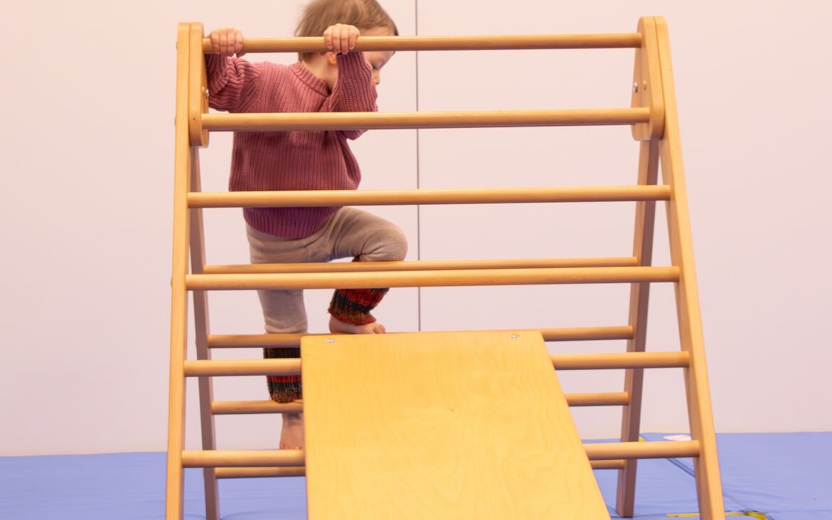 Je nach Fähigkeiten können sie sich im geschützenen Rahmen und eigener Geschwindigkeit im Krabbeln, Laufen, Klettern, Balancieren, Hüpfen, Hindernisse überwinden... erproben und spielend Bewegungsabläufe verinnerlichen.