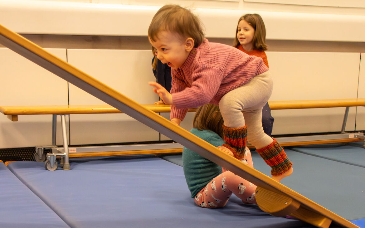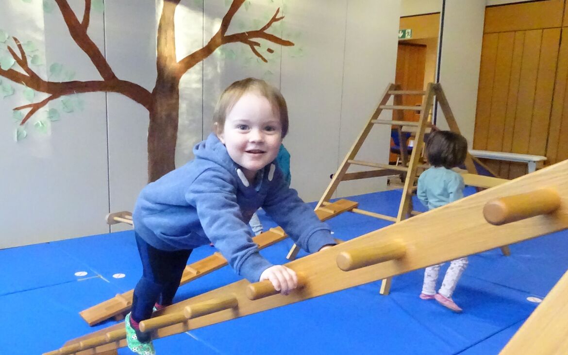 Je nach Fähigkeiten können sie sich im geschützenen Rahmen und eigener Geschwindigkeit im Krabbeln, Laufen, Klettern, Balancieren, Hüpfen, Hindernisse überwinden... erproben und spielend Bewegungsabläufe verinnerlichen.